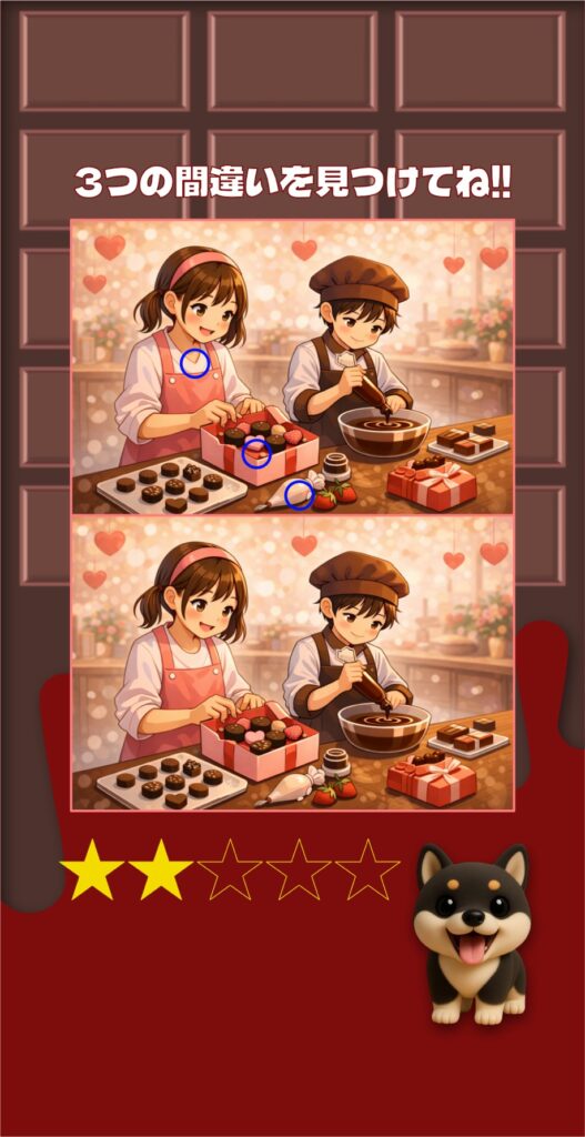 今回の「バレンタインのクッキングシーン」間違い探し、中級編はいかがでしたか?